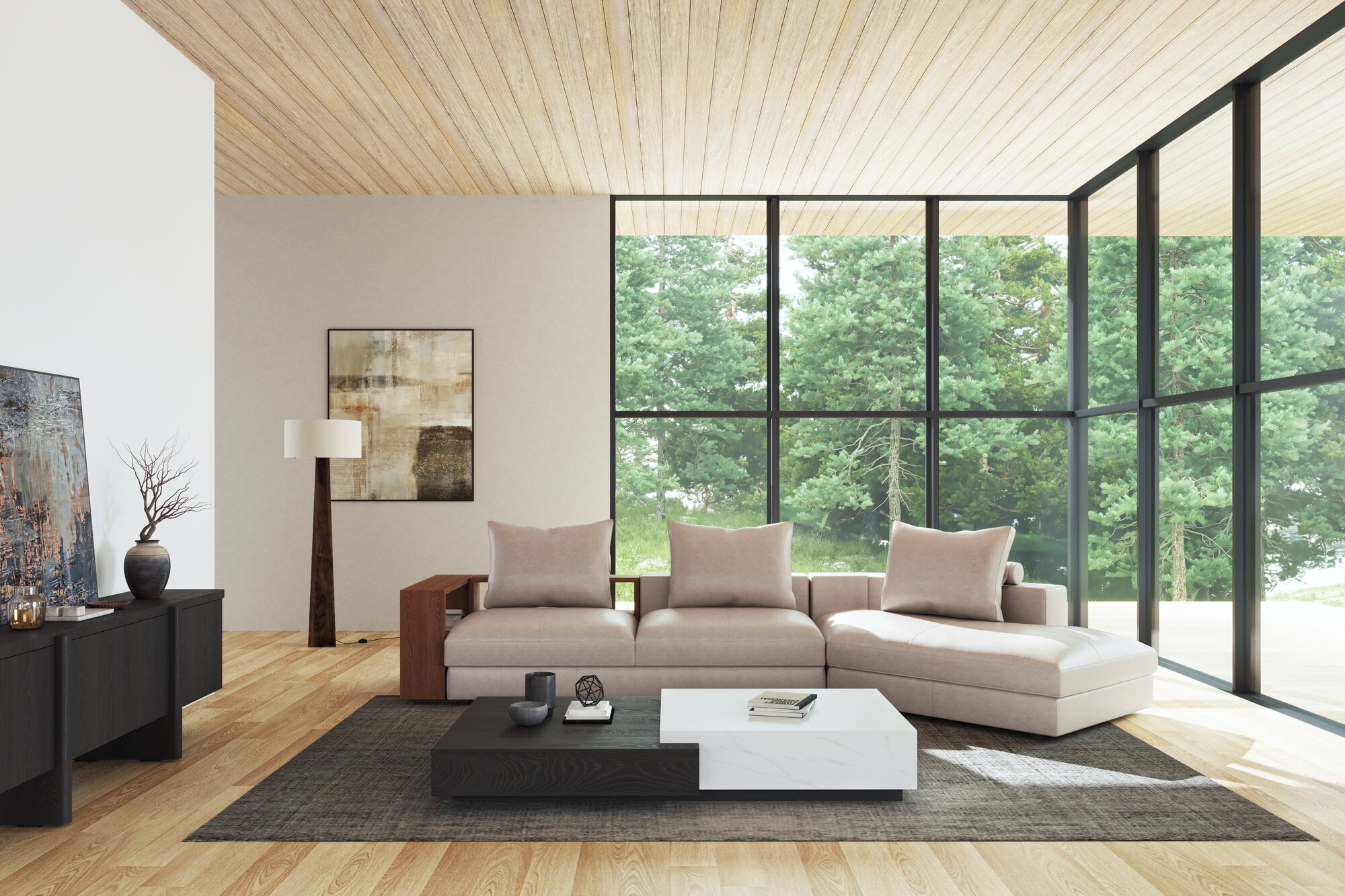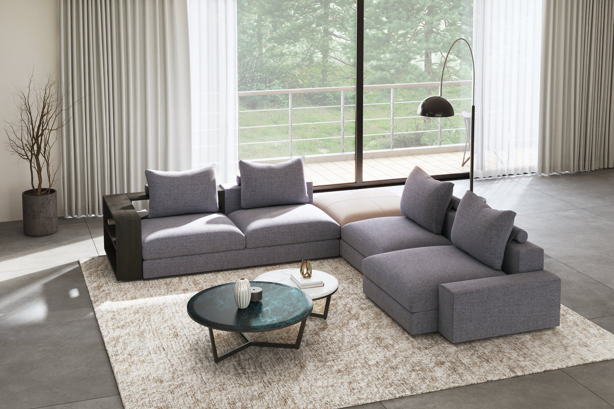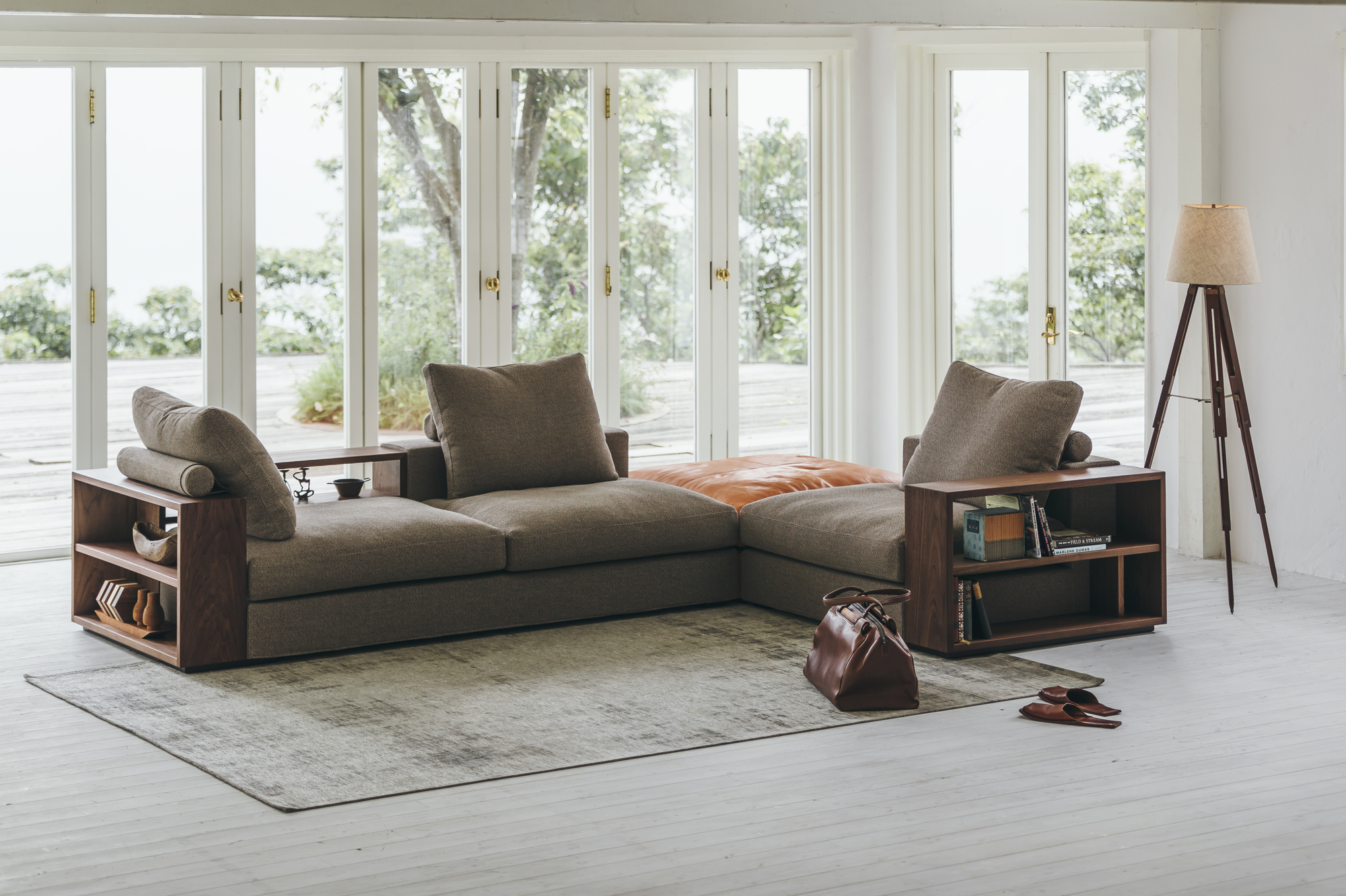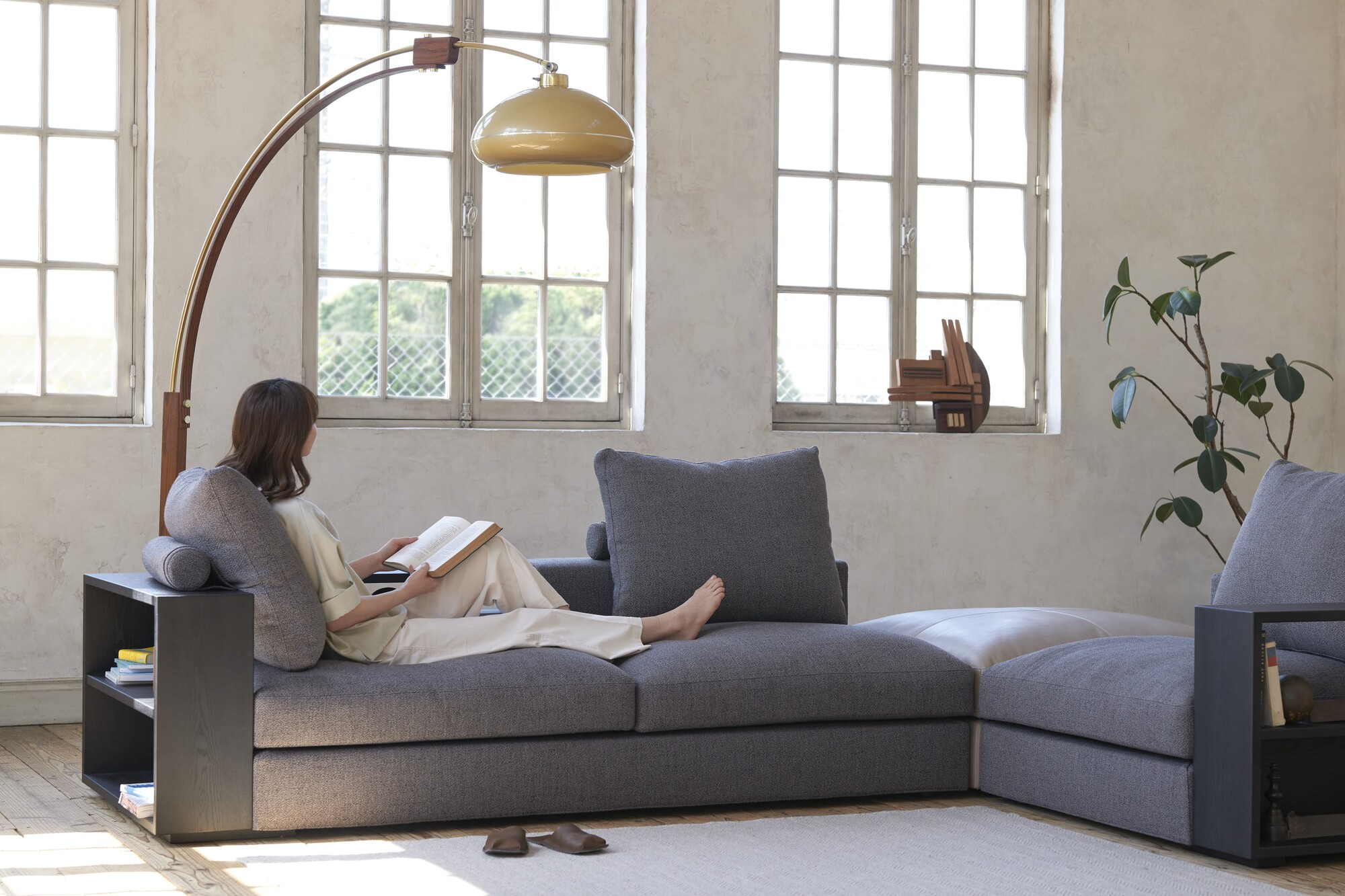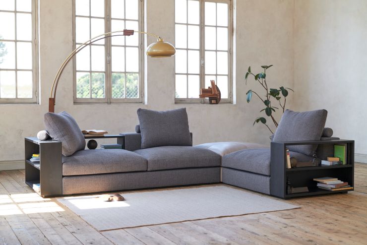 一見すれば凛とした存在感を放つコーナーソファ。しかしその奥には、豊かな可変性を秘められている。多様なパーツとサイズオーダーが、空間に寄り添う最適なかたちを描き出し、木の肌理とファブリックやレザーの風合いが重なるたび、ソファは幾通りもの表情を見せてくれる。