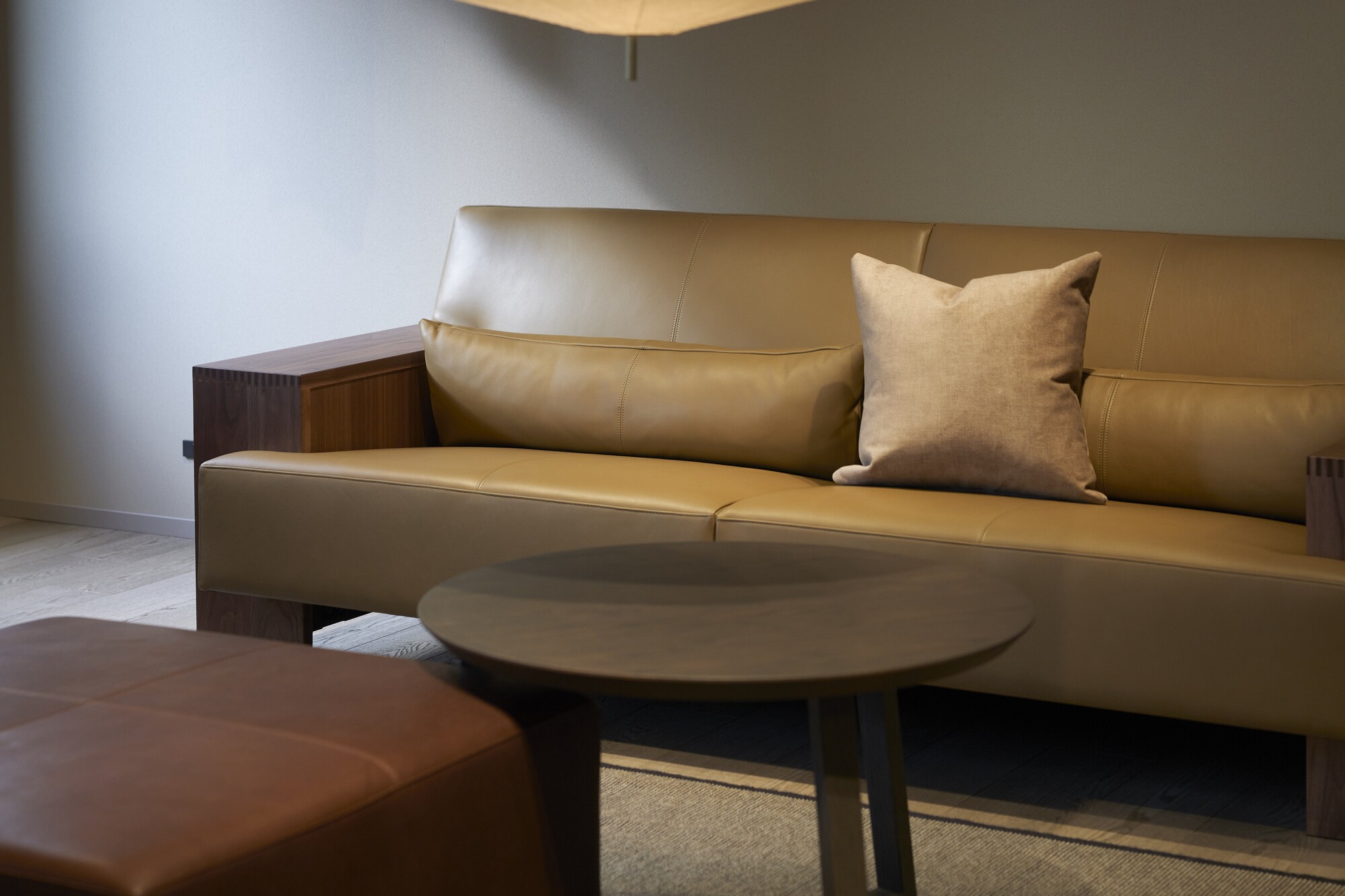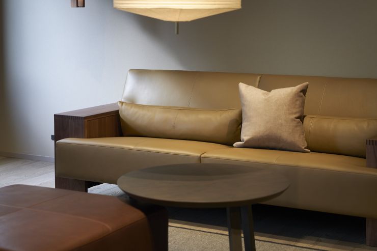 床に座るように足をあげて寛ぐ、日本ならではの所作に着目。広く確保した座面の奥行きと、腰クッションを外せる構成により、自然に胡坐をかける余白が生まれた。決まった姿勢に縛られず、自由な座り方を受け止める寛容さを備える。
