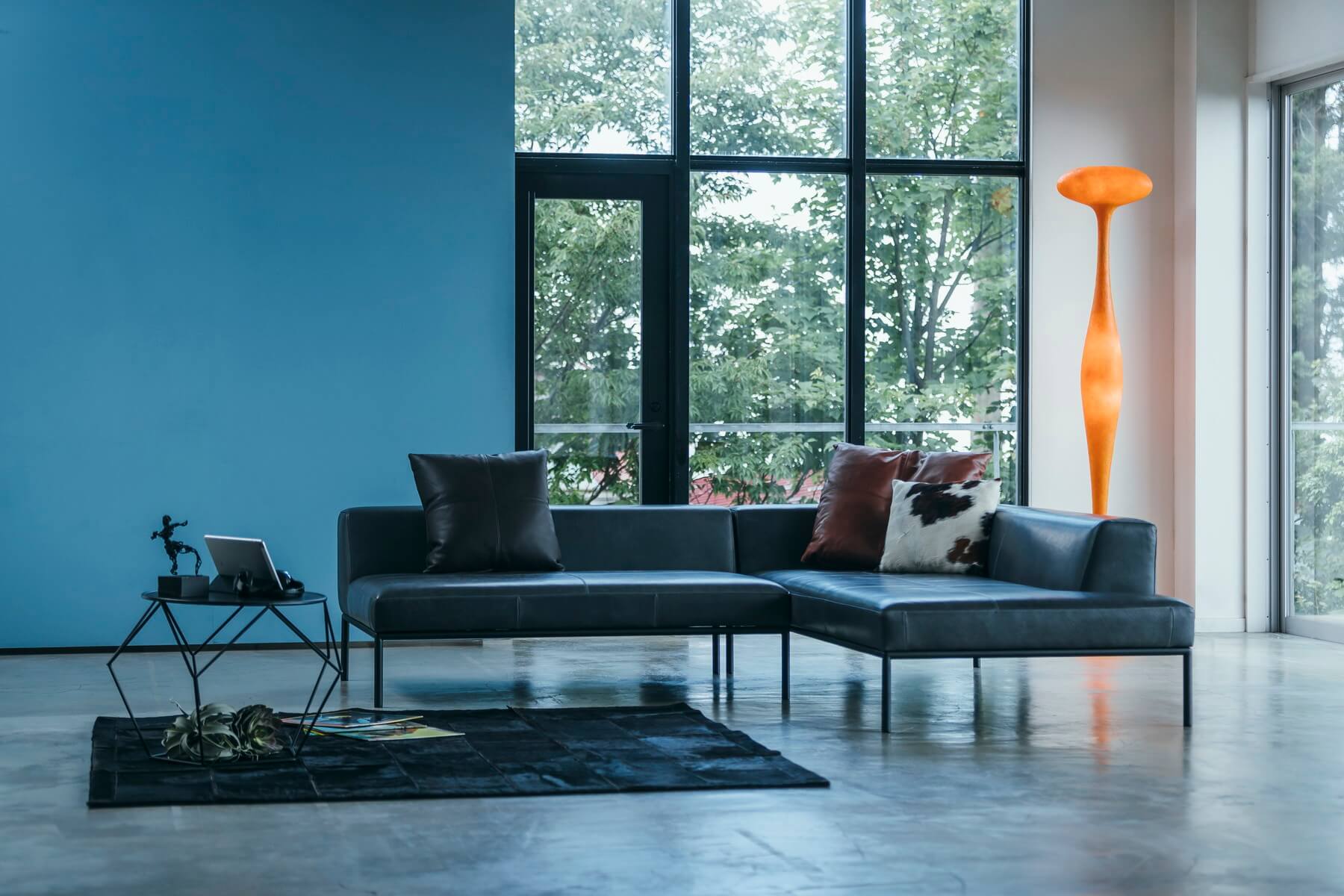 沙发越来越多地放置在客厅开放式厨房的中间,所以高度不能够过高,以便从餐厅可以看到电视和风景
